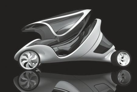 这更是一款异想天开的概念车。其设计者RossLovegrove将这个球形的汽车用一根杆子支撑着,为下面腾出空间。这样,在顶部的太阳能电板起作用之后,车子就有了足够的能源供给,而因为它“高高在上”,晚上还可以当路灯。除此以外,它还拥有卫星导航、语音控制系统等。