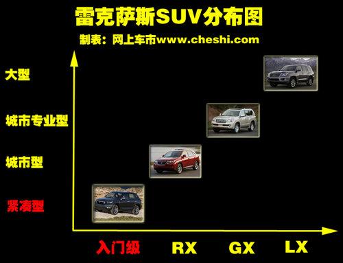 在紧凑型SUV这一细分市场上,宝马旗下的X1于今年年初正式引入了国内,而奔驰也已表示,将推出为紧凑SUV市场量身打造新款SUV--奔驰BLK。雷克萨斯作为丰田汽车的高端品牌,旗下的SUV车型还是比较齐全的。在车型分布上,包括了城市型SUV-RX系列、城市专业型SUV-GX460和大型SUV-LX570等车型,不过在入门级车型中,雷克萨斯还是属于空白。因此在引入入门级轿车CT之后,入门级SUV车型的引入也是势在必行。