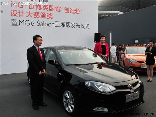 10月18日,上海世博会英国馆,上汽集团举行了MG世博英国馆创造粒设计大赛颁奖暨MG6 Saloon三厢版发布仪式,这也是MG6 Saloon三厢版的首次亮相。三厢版的推出将丰富MG6的产品线,为消费者提供更多的选择。