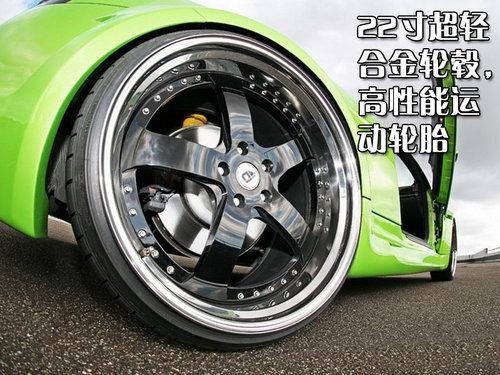 CLP暴力改装版650i配备了5幅黑色22寸超轻合金轮毂,上面镶有一圈银色金属铆钉。配合它的是22寸高性能低扁平运动轮胎,具体规格为前255/30-22,后285/25-22。这套装备价值8960欧元,约合人民币83000元。而普通版6系使用的则是较为逊色的18寸轮毂。