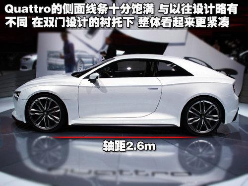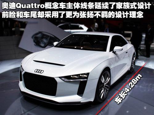 奥迪Quattro概念车在巴黎车展首发,作为奥迪展台上一款备受瞩目的车型,奥迪Quattro概念车集奥迪家族各种传统元素于一身,并且在某些设计环节上还做出了不小的创新。奥迪Quattro概念车的诞生是为了纪念奥迪Quattro技术研发成功30周年,这款十分独特的掀背轿跑车有望量产,不过时间暂时尚不确定。