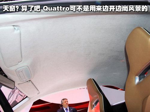 通过这张图我们可以看出奥迪Quattro概念车并未配备天窗,不过大家也不必疑问为何这样一款好车连天窗都没有,对于奥迪Quattro概念车来说,它的用途可不是欣赏风景,竞速才是它的真正目的。