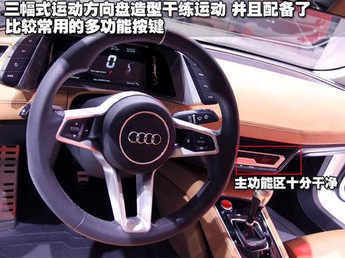 另外,仪表盘外框两侧分别有两组控制按键,这些按键本应也是出现在主中控台区的,不过现在被放在了更便于操作的位置。奥迪Quattro概念车的驾驶者可以纯粹的感受眼不离前的极致便利享受。