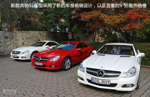 在试驾过奔驰两款SL敞篷老爷车之后,四辆最新款的奔驰SL车型静静的停放在我们的面前,无论是SL300、SL350、SL500还是SL600都让人拥有迫不及待的驾驶欲望。