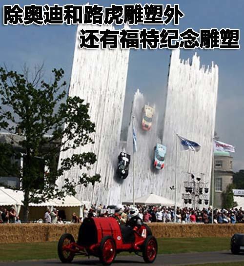在奥迪百年庆典时,Gerry Judah就为奥迪量身打造了纪念雕塑。奥迪百年庆典雕塑座重达40多吨,高35米,采用钢结构雕塑,展示了两辆汽车直冲云霄的场景,祝福奥迪公司能在下一个百年更上一层楼。雕塑上的两辆汽车分别为1937年经典流线赛车和R8 V10引擎运动跑车。设计师称,这项雕塑体现了奥迪汽车的运动精神、业界威信和开拓势头。它将是今年英格兰古德伍德速度节上的一大亮点。