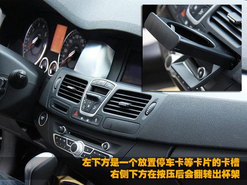 控制区的左右侧分别是四边形造型的空调出风口,左下方是一个放置停车卡等卡片的卡槽,右侧下方在按压后会翻转出杯架。