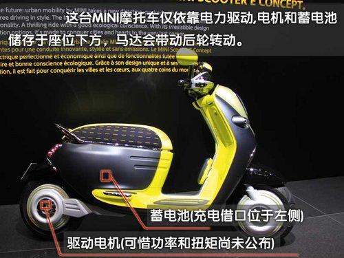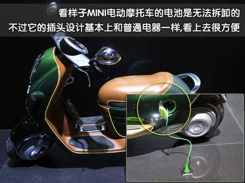与大部分电动摩托一样,MINI Scooter E由一台位于后轮的电机驱动,电力来自锂离子电池组并且可通过普通的电源插座进行充电。不过可惜的是MINI暂未公布这款车的电机功率、行驶性能、续航里程及充电时间等技术细节。