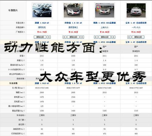 四款紧凑型汽车性能参数对照表(点击可查看大图)