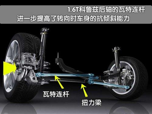 趴在科鲁兹1.6T的车底你会发现这套后悬架与以前的科鲁兹大为不同,事实雪佛兰针对1.6T科鲁兹进行了赛车级的底盘调教。从调教方面再到硬件的配置上都比以前的科鲁兹更为强悍,扭力梁+瓦特连杆已经出现在了别克车系上,但是在雪佛兰车系上还是首次使用。雪佛兰选在1.6T科鲁兹上自然也是有他的道理,因为更强的动力也需要底盘的支持。