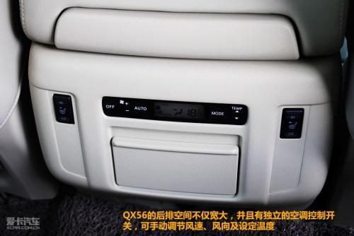 而对于这样级别的车型来说,后排乘客也是英菲尼迪需要特别关照的地方,QX56的后排空间不仅宽大,并且有独立的空调控制开关,可手动调节风速、风向及设定温度。为该车量身定制的三屏独立显示高级视听娱乐系统,而Bose高级音响系统的扬声器多达13个,其中后置扬声器被安装在车顶棚上,从而保证音质丝毫不受后排座椅靠背位置及行李物品的影响。