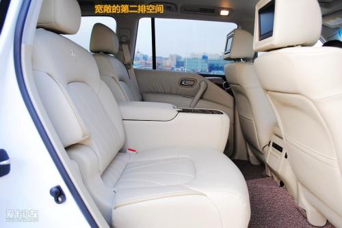 巨大的车身造就了QX56卡车一般的坐姿,其座椅高度之高在国内也是非常罕见。对于QX56这样的庞然大物而言,我们基本上可以忽略其内部乘坐的空间的考量,宽大的座椅和高大的车身再加上超过3米的轴距,使得乘坐这款车型完全可以将身体很好的舒展开来。