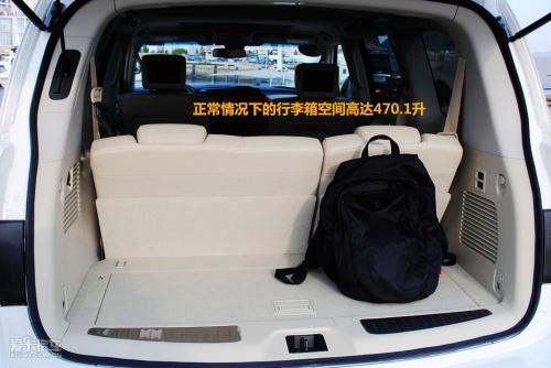 QX56的标准行李箱空间高达470.1升,放倒第三排座椅后可以扩展到1404.5升,再收起第二排座椅,装载空间更是高达2692.9升,此时的QX56俨然成为一部中型厢式货车。