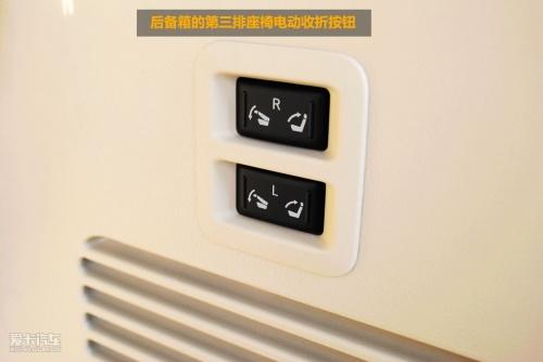 即使是第三排座椅,坐在里面也绝不会让人觉得压抑和委屈,头部空间和腿部空间仍显得绰绰有余。第三排座椅可以分别从后备箱和前排中空调通过按钮进行电动收折,使用起来非常的方便。