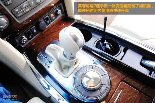 值得一提的是英菲尼迪7速手自一体变速箱配备了加热器,能在短时间内将油液快速升温,使得变速系统迅速进入最佳工作状态。在实际驾驶中,绵密的速比使得这款变速器在档位衔接上显得相当平顺,而英菲尼迪特有的降挡转速匹配技术进一步提高了换挡品质。