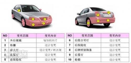该车是伊兰特继2007年推出小改款后的又一次改款。本次改款以外观升级为主,包括全新造型的保险杠,更加时尚的大灯及后尾灯,还有全新款式的轮毂造型等等。