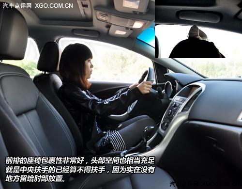 英朗的轴距已经达到2685mm,所以空间上没有让我们失望。真皮座椅的舒适度肯定是毋庸置疑的,不仅包裹性和支撑性都非常的不错,头部空间也相当充足,虽然图中体验者身高只有165cm,但是从头部剩余量上看,对与180cm的人来说也不会有太多的压迫感。而后排空间更是让人意外,腿部两拳,头部一拳半的距离对于这种小车来说已经是很奢侈了。