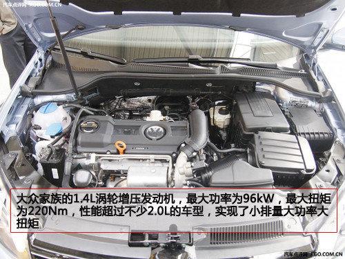 高尔夫6共有三款车型搭载了大众家族的1.4L涡轮增压发动机,最大功率为96kW,最大扭矩为220Nm,性能超过不少2.0L的车型,实现了小排量大功率大扭矩,在油耗和动力性方面取得了兼顾。与发动机匹配的是5挡手动和7速DSG双离合变速箱。