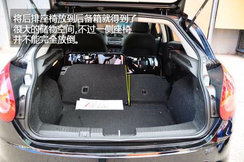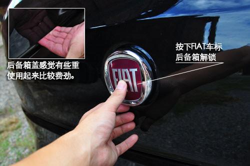后备箱开启采用了电磁感应按钮,稍用力按压FIAT标志即可开启一个角度,设计颇为精巧。后备箱的容积并不算大,搁下一个旅行背包已经占据了1/3的体积,后排座椅支持4比6放到,虽然不能完全放平,但是也为后备箱提供了更多空间。总之,博悦的后备箱应付日常使用是完全没有问题的。只是后备箱盖感觉有些重使用起来稍稍有些费劲。
