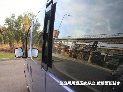 侧换门开启力度适中,滑轨位移平顺。很遗憾的是侧窗采用负压式开启,而且玻璃面积较小。入座第二排座椅,可以感觉明显宽裕的空间,头部及腿部都有两拳左右的距离。另外座椅折叠方便简单,只需轻轻一提靠背上方的拉手。