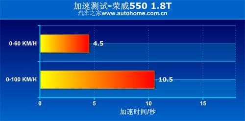 为了配合上佳的操控性能,荣威550也有1.8T的性能版本,这款发动机的最大功率为160马力,最大扭矩215牛米,但10.5秒的0-100Km/h加速成绩(自动挡车型)虽然够用,但对于一款偏重性能的车型来说还是有些遗憾的,让“T”在不出色的加速时间面前暗淡无光,也不免让一些喜爱荣威550的消费者有点失望。不过,该车刹车的车身姿态控制较好,42米的距离不算好也不算差,恰好达到了汽车之家优秀的标定范围。