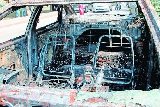 记者在现场看到,这辆轿车被烧得只剩下骨架,4个轮胎早化成灰,车内,方向盘、座位被烧得精光。地上散落着黑色和灰色粉末,这部小车是黑色漆,残骸却是灰白色的。车牌掉落在地上,隐约可见“闽DLR303”。车主何铭洋称,这辆北京现代的新款“悦动”轿车是今年10月11日,他花了约10万元从厦门购买,到出事前,走了900多公里。昨日3时左右,他开车到此路段,看到车头正在自燃,和坐在副驾驶座上的朋友赶紧下车,又取出车上的小型灭火器对着车头猛喷,手都被烫伤了,可是仍起不了作用,大火很快吞噬了整辆小车,好在人没事。