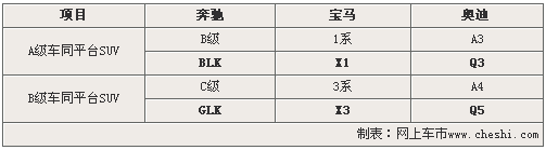纵观奔驰、宝马和奥迪德系三大豪华品牌,在入门级轿车和都市SUV一贯采用同平台制造生产,这样既降低了研发成本,也提升了生产效率。以奔驰为例,新C级作为奔驰入门级三厢家轿,与奔驰首款都市SUV-奔驰GLK采用同平台生产,而新一代B级车型与奔驰BLK也是如出一辙。