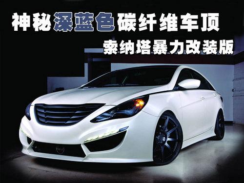 轻量化处理是改装车的重点,这辆SEMA版索纳塔车顶采用全碳纤维材料打造。与我们一般所见的灰色碳纤维不同,这台索纳塔的车顶碳纤维为诡异的深蓝色,时刻透露着神秘的运动气息。