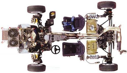 在这样的要求下。WRC赛车以不仅仅是通过简单的改装就能制造,而完全可以用脱胎换骨来形容。首先是车架的加固和强化,除了增加了防滚架,拆除了不需要的内饰与后座以外,WRC拉力赛车的车身结构实际上已经从量产车的承载式车身结构转变为一个由钢管结构焊接而成的空间管阵式车架结构,不仅整车刚性大幅提升,而且可以将整体重量降到最低。