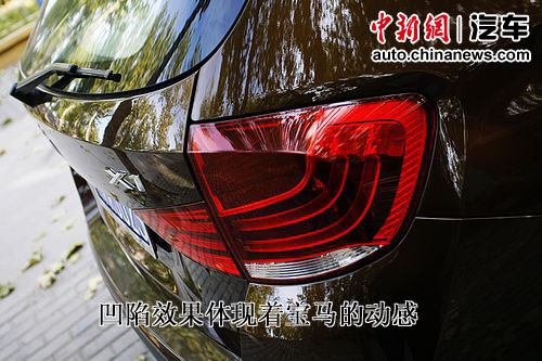 尾灯的设计借鉴了宝马其他新车型的特点,尤为犀利的L形尾灯设计,在夜晚使人立刻就能辨认出这是辆宝马车。导光条的引入让车辆更具科技气息。宽大的后保险杠的设计又很有越野的味道,镶嵌在上面的反光条和下部护板是典型特征。后备箱的凹陷效果时刻体现着宝马的运动精神。