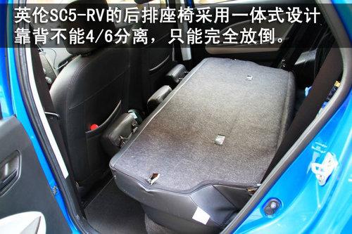英伦SC5-RV的后排腿部空间比较宽裕,而且车身比较宽,内部的横向空间也比较到位,能满足一家人出行的乘坐需求。但英伦SC5-RV的后排座椅采用一体式设计,座椅靠背不能4/6分离,所以靠背只能完全放倒。