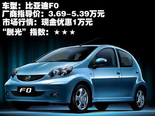 比亚迪F0的外观设计的很卡通,让本身就圆润的前脸显得胖嘟嘟的,第一眼就让人觉得可爱亲切。而尾箱采用了全玻璃制造,很时尚。动力方面,F0并不强势, 直列三缸BYD371QA发动机只有1.0L的排量,最大功率为50KW,最大扭矩只有90N/m,并且要到4000转时才能达到。F0的亮点在于搭载了BOSCH节油控制系统,可以将百公里经济油耗降低到只有4.2升。