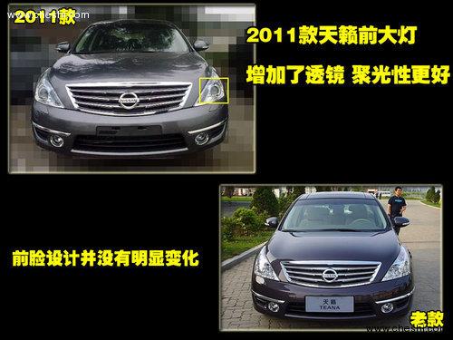 2011款新天籁在外观方面没有进行大规模的调整,仅在细节部分作出了修改。在前进气格栅部分,新款车型的镀铬边框进行了加粗,使前脸显得更加的犀利。在前大灯部分,这款新车增加透镜,聚光效果得到提升,外观更凸显大气。