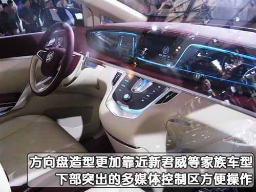 别克全新一代GL8概念车已经于去年的上海车展上以全球首发的身份首次亮相,全新的外形设计可以看到上海通用别克下一代GL8的大致轮廓,整体感觉更加时尚前卫,科幻味道十足。从外观上,别克新一代GL8商务车沿袭了像新君威等家族式的前脸造型,直瀑式的前进气格栅很有气势的竖立车头。眼神更加犀利的柳叶眉状前大灯对称的分布在车头两侧,阳刚中带有柔美。