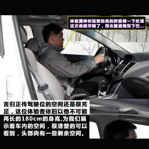 科鲁兹前排空间相对还是充足的,身高180cm的旁人坐在其中,头部尚有很大一块的富余量。但后排空间就不那么乐观了,头部空间明显没有前排的充裕,如果前排同样是180cm的驾驶者,调整座椅后,后排的膝部与座椅的空间不足一指。