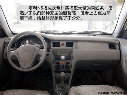夏利N5内饰也经过了一番大改,放弃了原先的暖色格调,该成灰色材质搭配大量的直线条,虽然少了以前那种家居的温馨感,但看上去更为简洁干练,给整体形象提了不少分,没有十分廉价的感觉。