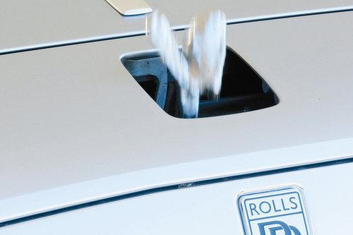 这种景象在这次试车途中屡见不鲜。就用我们这辆劳斯莱斯古思特车头上装饰的“飞翔女神”当例子吧。这类东西经常会被掰掉偷走,于是劳斯莱斯的工程师把这个老姑娘安放在了一个底座上,只要按下车钥匙上的锁车键,底座就会藏进发动机舱盖里。另外通过中控台上的一个菜单按钮也可以控制它的升降。太有才了。