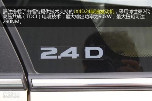 动力单元,驭胜搭载内部投产代号为JX4D24的柴油发动机,采用博世第2代高压共轨(TDCI)电喷技术,其中,2.4L发动机的最大输出功率为90kW,最大扭矩可达290NM。匹配5速变速箱。尽管目前还没有确切的数据,但相信驭胜的车重不会轻,搭载柴油动力也是个不错的选择。