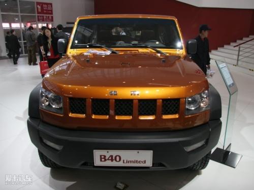 就我们目前了解到的情况看,B40车身尺寸为4200/1800/1750mm,轴距为2400mm,发动机采用2.4L直列四缸发动机,最大功率105kw(141马力)/4800rpm,最高扭矩217N/3000-4000rpm。匹配5速手动变速箱,采用分时四驱,整体式桥,并且可选择在后桥安装限滑差速器,FRP可拆卸顶篷。