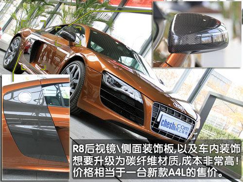 在车门后方,在轮拱和车顶之间,配有宽大的叶面侧空气进气口,为V10发动机的进气及冷却提供足够的风量。侧边风叶的漆面效果与车身的颜色配合得天衣无缝,当然如果你有特别的需求和足够的金钱,也可以把普通材料更换为碳纤维材料而那一定会很酷!此外,例如朱鹭白、幻影黑以及珠光效果等8种个性颜色,都是R8的可选外观色彩 。