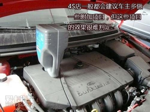 前不久,我的一个朋友去为他的新车进行首保,本来新车首保是免费的,但是他却花了三百多元,原来4S店的工作人员告诉他,他的车最好做个发动机养护,我那爱车心切的朋友就毫不犹豫地答应了,可这个养护就是往机油加注口中倒一瓶发动机清洁剂,然后怠速运转一会就好了,完全没有用处。朋友的钱,算是白花了…