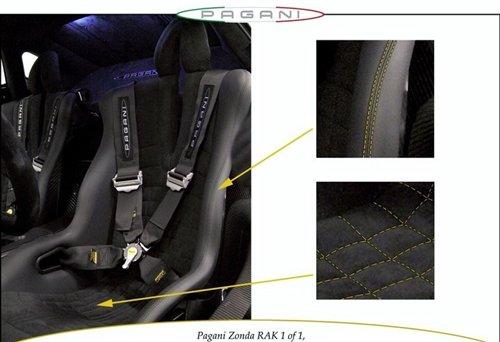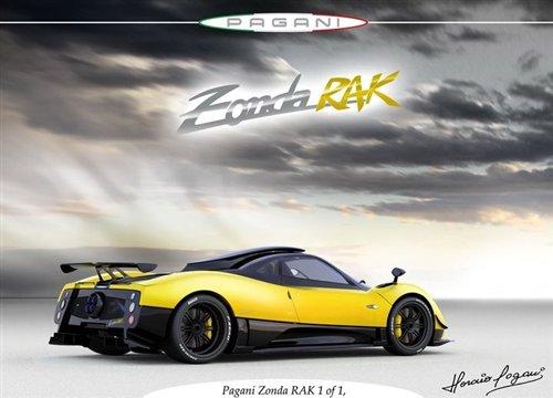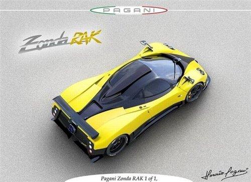 帕加尼Zonda RAK根据客户的需求将采用黄黑双色涂装的外观、特殊的黑色合金轮毂,内饰大量运用真皮、麂皮碳纤维的搭配来进行个性化选装。新车的售价预计在150万欧元(折合人民币1362万)左右。(申文恒)