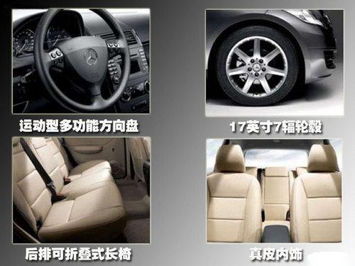 奔驰A级采用三页式散热格栅,统一配备前后雾灯和电动可折叠后视镜,其中奔驰A160装备16寸五双辐合金轮圈,而A180装备17寸7辐式轮圈,两款车型都可以选装全景天窗。在内部,两款车都采用运动型多功能方向盘,其中A180使用真皮内饰,并加入带不锈钢表面和橡胶钉运动型踏板。