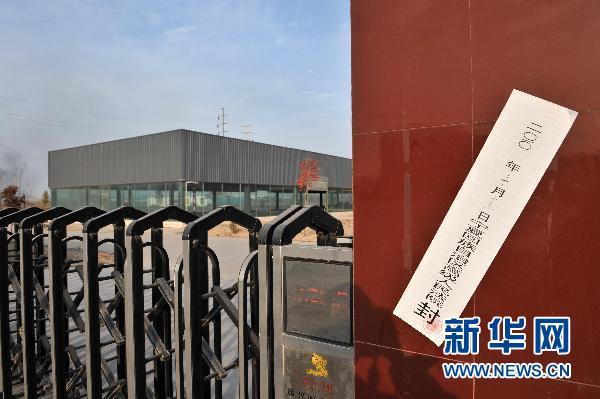 昔日的“新大地汽车公司”大门紧闭,法院封条贴在大门口(10月21日摄)。王鹏 摄