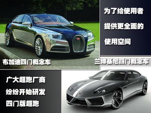 像保时捷、阿斯顿马丁、兰博基尼这种超级跑车代名词级的厂商,生产超跑自然对他们来说只是家常便饭,为了给使用者提供更多的便利,广大超跑厂商便开始着手研发四门跑车。性能方面,四门跑车与两门跑车基本可以保持相同的能力,不过由于车身和轴距的加长,操控能力方面可能会与两门跑车相比略显逊色。