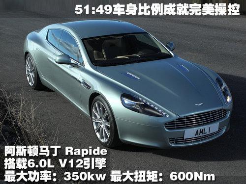 Rapide是英国超跑大牌阿斯顿·马丁新一代豪华四门轿跑,它搭载了6.0L V12引擎,最大功率350kw,最大扭矩600Nm。在超跑当中,阿斯顿马丁旗下的产品一直都是典范级的产品,51:49的完美车身比例,也就成就了Rapide与其他同品牌产品同样的出色性能和操控。