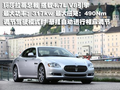 玛莎拉蒂总裁的设计集跑车的炫酷与豪华轿车的沉稳于一身,搭载了4.7L V8发动机,最大功率317kw,最大扭矩490Nm。玛莎拉蒂总裁配备了悬挂系统与驾驶模式关联功能,在选择不同驾驶模式时,悬挂系统会自动调节为该模式最适合的硬度。