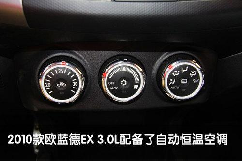 欧蓝德EX 3.0L的三辐式方向盘配备了音响系统控制按键,而定速巡航和换挡拨片则是标准配置,提高高速行驶的舒适性和运动气质。另外,欧蓝德EX采用的全自动空调系统,旋钮式的设计相当大气,操作也十分的方便,镀银的外观设计与中控台完美契合。无论是严寒冬季还是炎炎夏日,有了它都能从容面对。