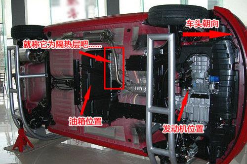 而另一方面的空间优化就是底盘,飞度将一般轿车放置在后侧方的油箱安置在了前排成员的正下方,而且我们可以从图中看到,这里是没有任何保护的,而那个被称作隔热层的东西……应该不超过5毫米厚吧,是否能有效隔热放在一边,托底、腐蚀性雨雪天气、相对坑洼的道路……飞度能走么?