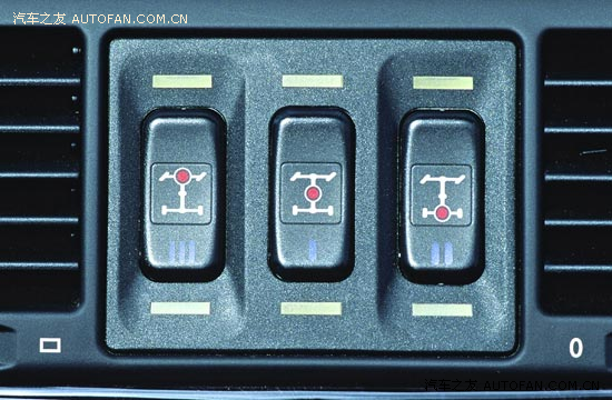 G500的越野利器可以看成两部分:四驱分动器和前中后三套差速器。G-Class装备的分动器是以后轮为主要输出轴,前轮的动力转换则通过分动器里的中央差速器完成,它能实现高低速四驱两档切换。另外,G-Class上的前中后差速器都可手动控制,它也是目前量产SUV中唯一配备此装备的车型。全部开启这“三套锁”在操作上也比较另类,需要按照中、后、前轴的顺序操作,它们是G-Class在野地脱困的法宝。