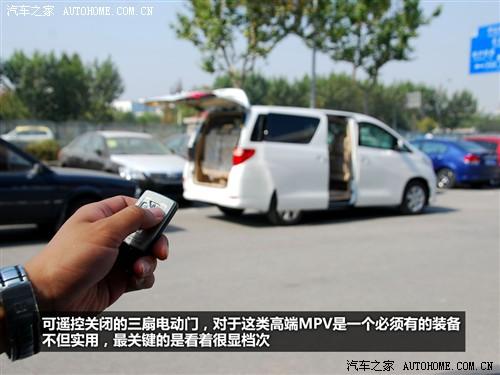 说完了外观,我们再来聊聊丰田ALPHARD埃尔法一个非常值得炫耀同时又非常实用的功能,就是三扇电动门(左右两侧的滑门和电动后尾门),而且这个三扇电动门都支持遥控开启及关闭功能,对于MPV车型而言,这个功能不但很显档次,而言还有很强的实用价值。